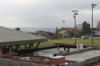 Avancés du chantier du gymnase des Ebeaux à Cruseilles par EFG étanchéité.